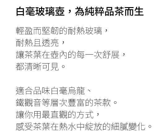 聯名設計了「白毫玻璃壺」這款充滿當代精神的沖泡茶器。