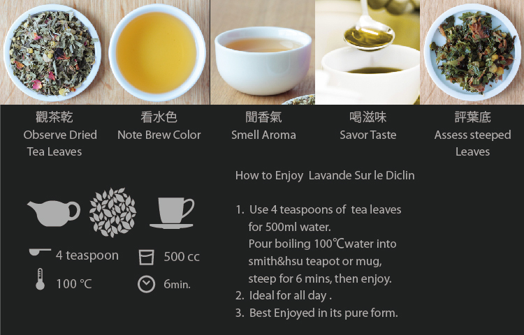 Indulge in the romantic twilight with this tea, basking in the aroma of lavender and the refreshing touch of mint.