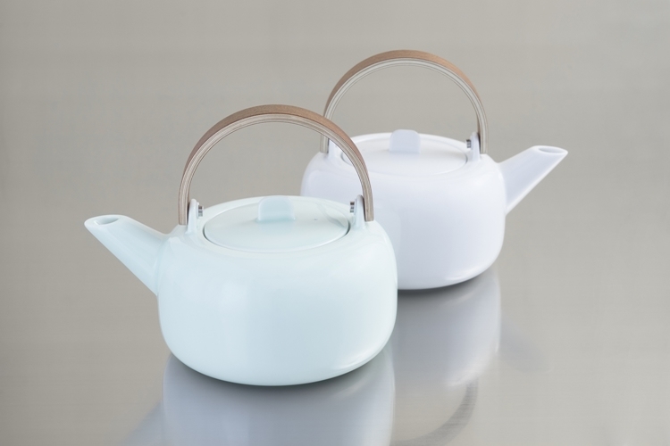 以白瓷結合曲木,造型寬厚渾圓,質地溫潤且細膩,是 smith&hsu 作品中屬於經典款的壺款。