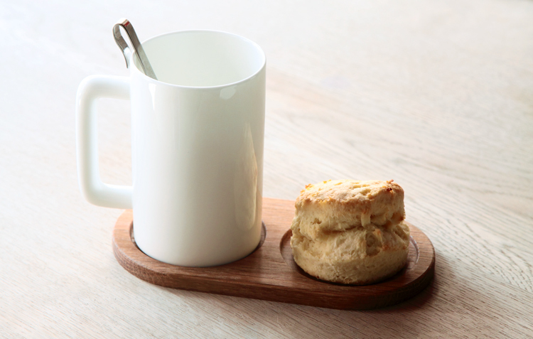 橡木托盤一邊是專用杯墊,另一邊則可放置茶包或搭配的茶點,是午後短暫的優閒時光或是親友來訪時最貼心實用的配件。